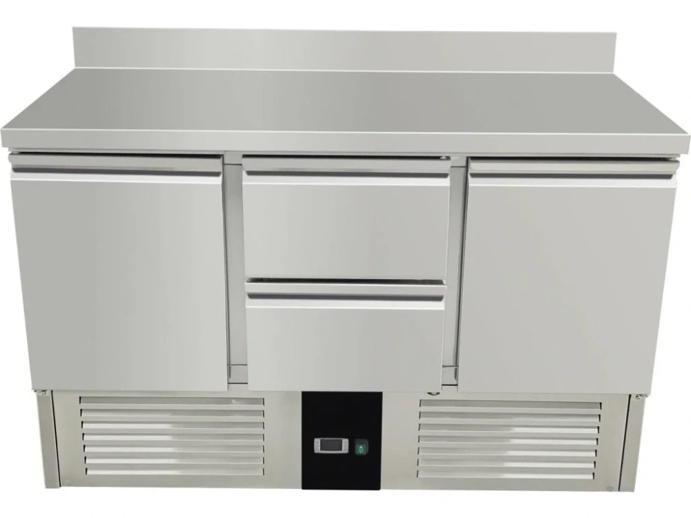 Chladící stůl / přípravný stůl 1,37 mx 0,7 m - se 2 dveřmi a 2 šuplíky uprostřed a zadním lememSkladem 38 ks27 132 Kč/ ks22 423 Kč bez DPH