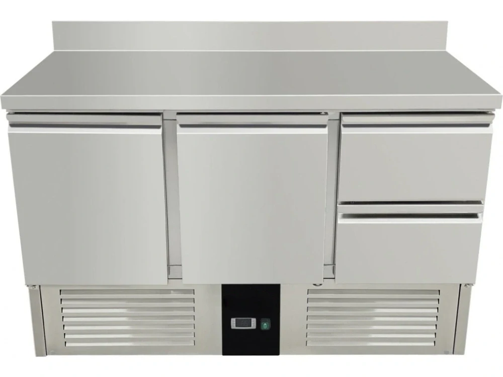 Chladící stůl / přípravný stůl 1,37 mx 0,7 m - se 2 dveřmi a 2 šuplíky v pravo a zadním lememSkladem 36 ks27 132 Kč/ ks22 423 Kč bez DPH