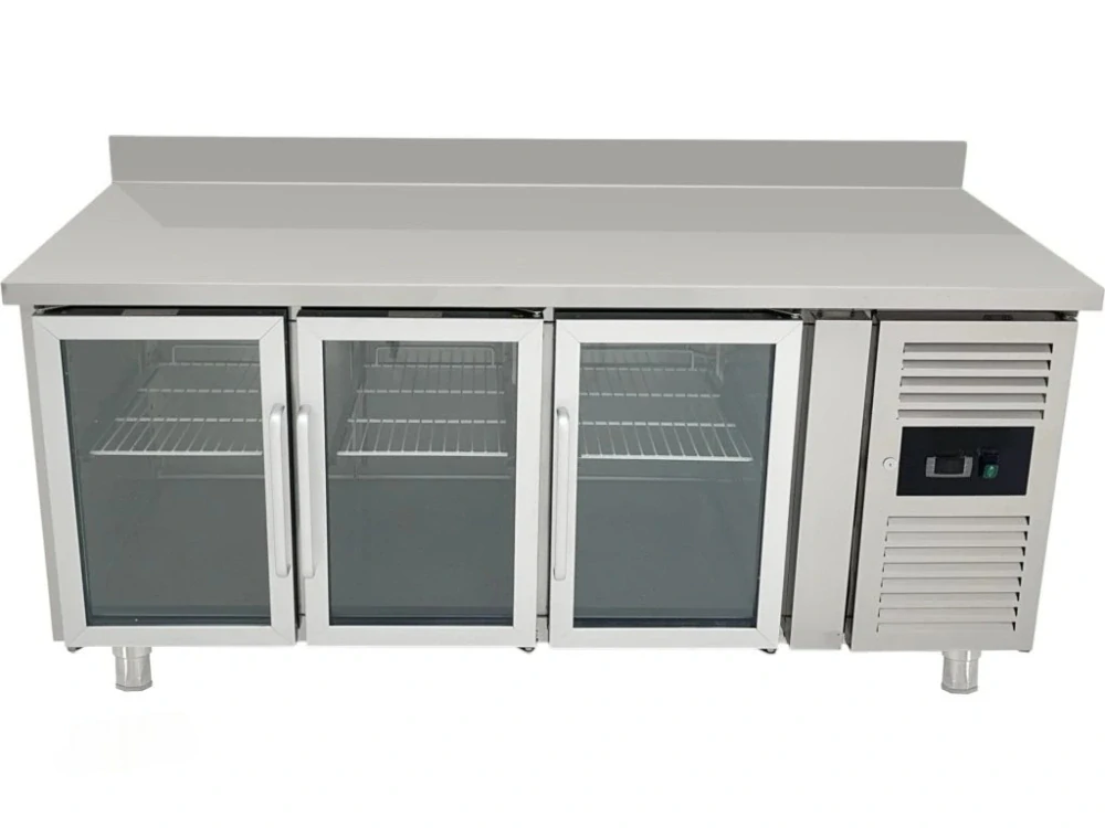 Chladicí stůl se 3 skleněnými dvířky a zadním lemem