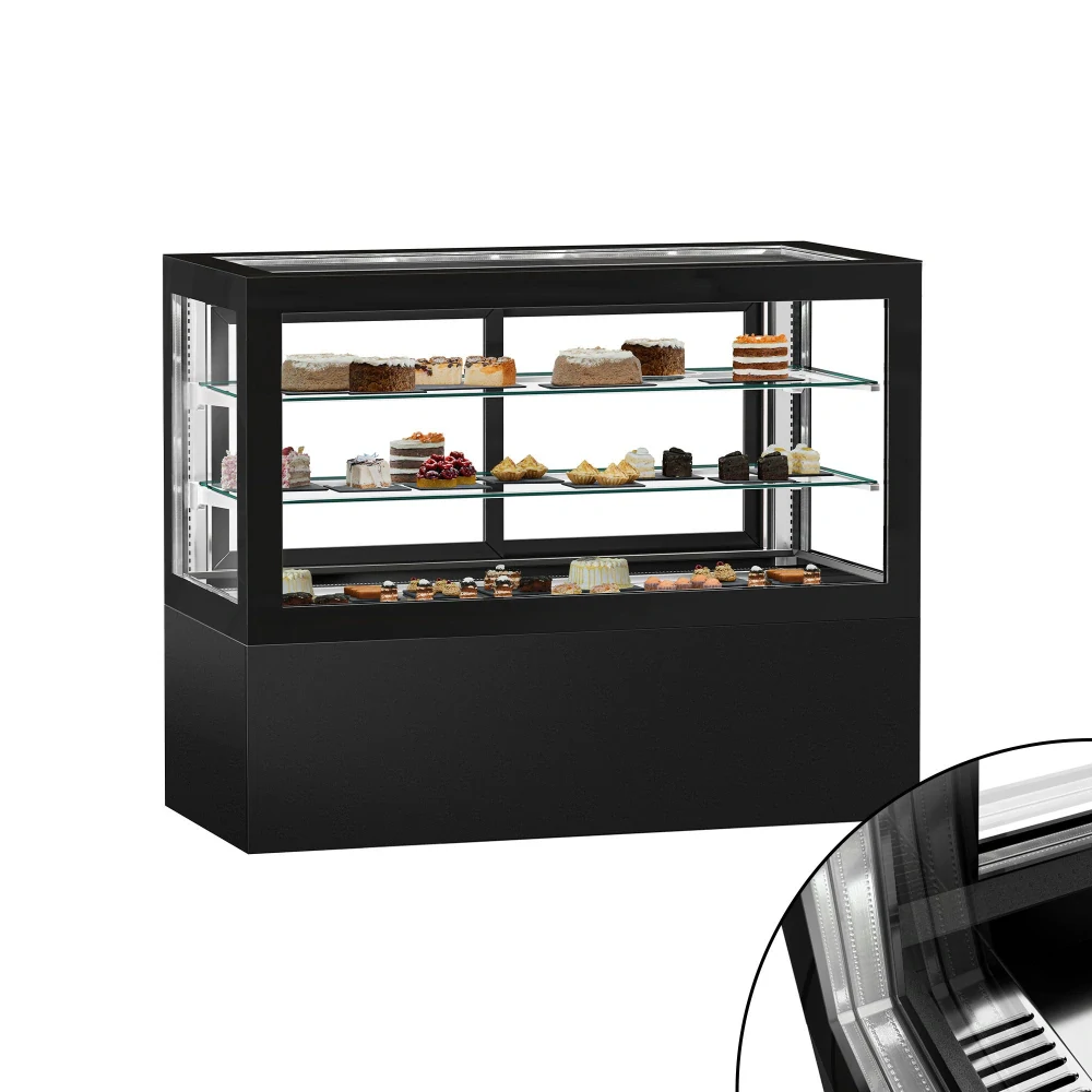 Cukrárenský pult Jakob - obslužná - 780 l - 1 610 mm - 1 posuvné skleněné dveře - s 2 policemi - černá