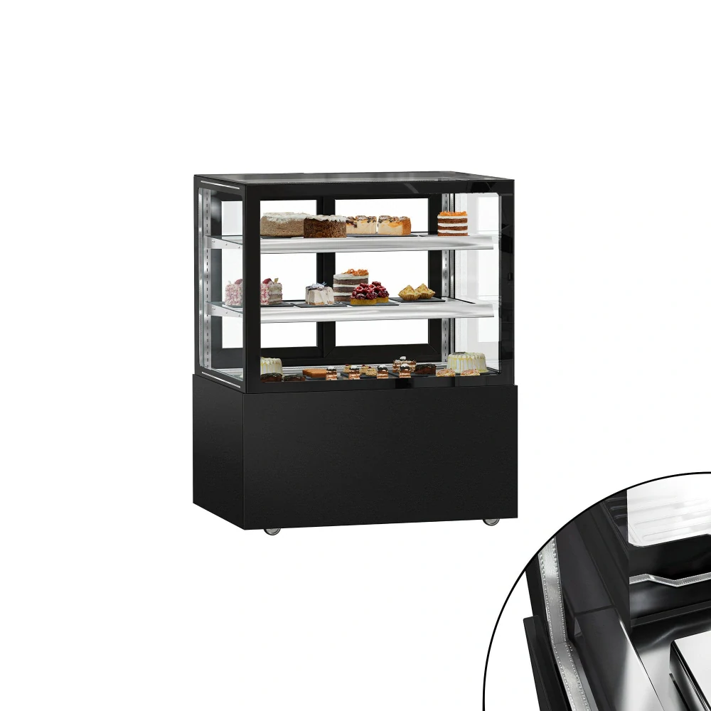 Cukrárenský pult MADRID - obslužná - 430 l - 1 000 mm - dvojité zasklení - s 2 policemi - černá matná