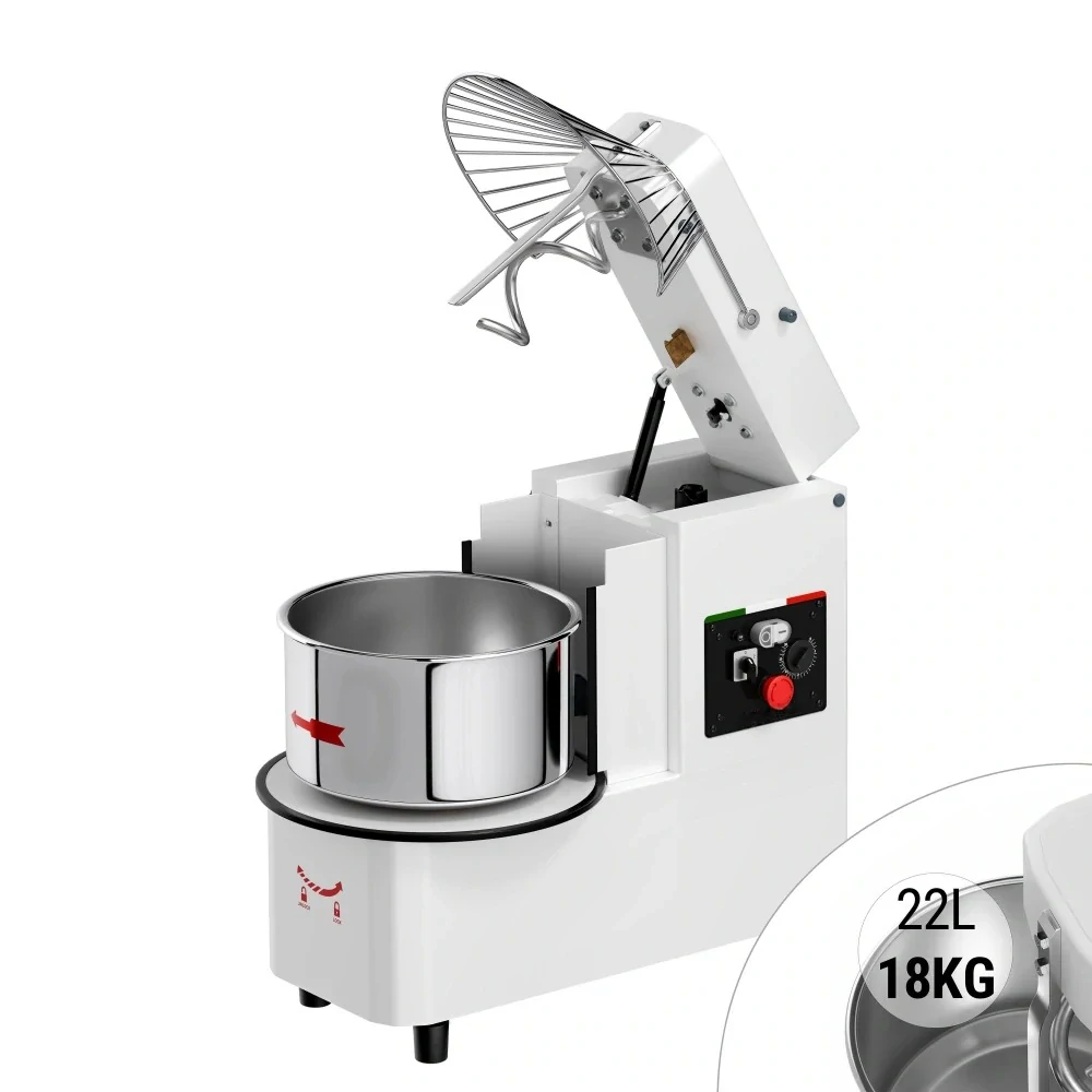 Hnětací stroj těsta - 22L/ 18 kg - 2 rychlosti - odnímatelný kotel a sklapovací míchadlo - funkce časovače