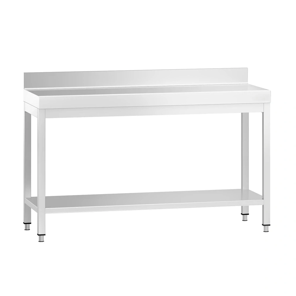 - Nerezový pracovní stůl se spodní policí a zadním lemem