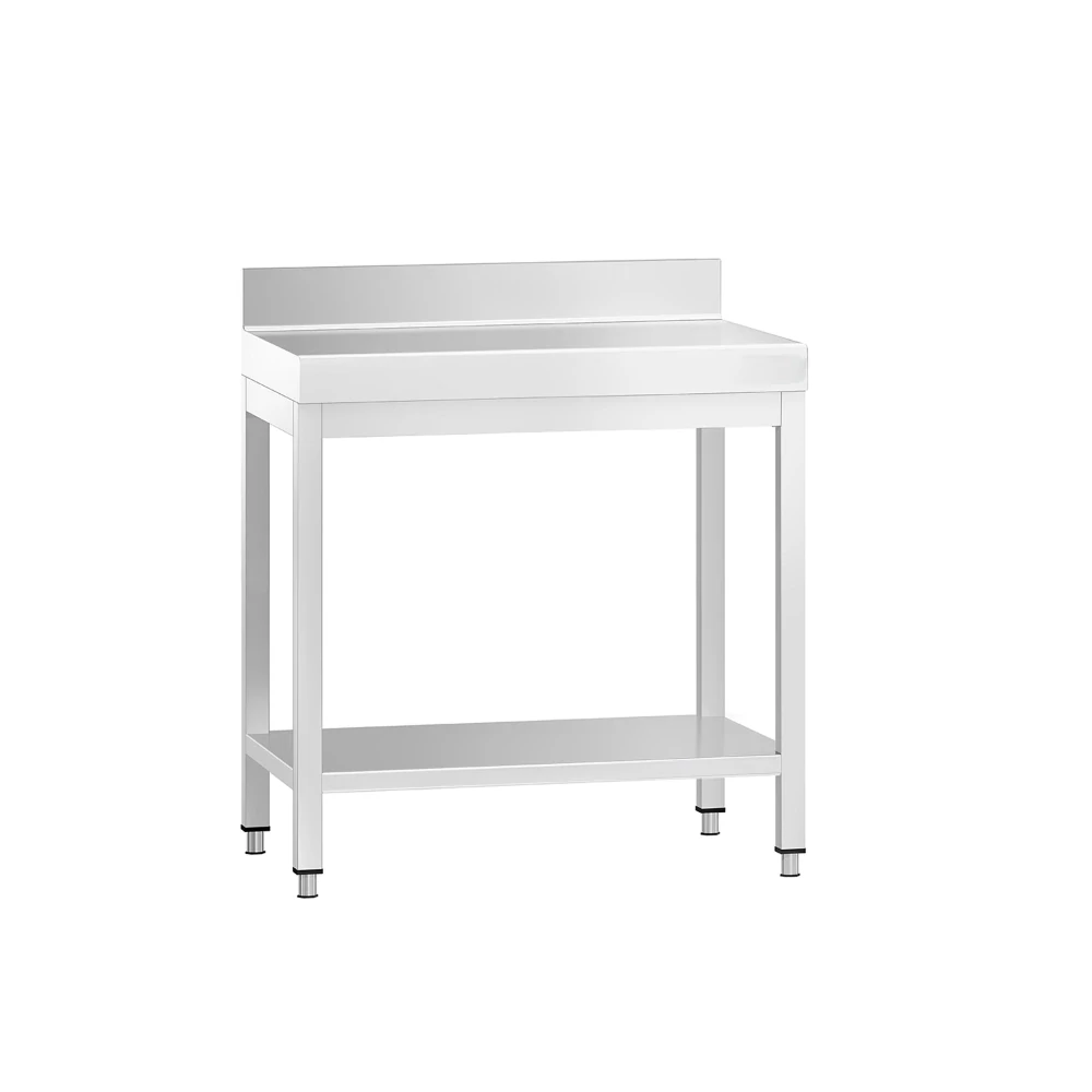 - Nerezový pracovní stůl se spodní policí a zadním lemem